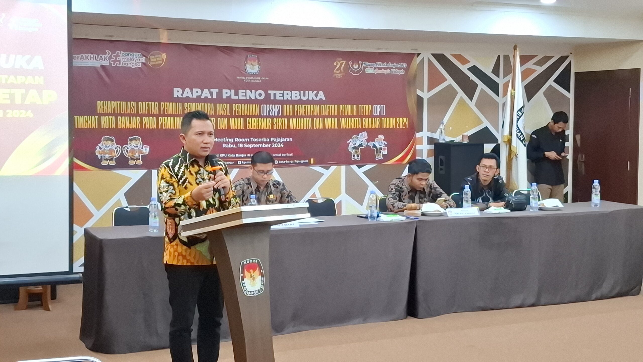 Mendekati Pilkada 2024, Komisi Pemilihan Umum (KPU) Kota Banjar menggelar rapat pleno terbuka rekapitulasi daftar pemilih sementara hasil perbaikan dan penetapan daftar pemilih tetap pemilihan serentak 2024 di salah satu aula toserba di Kota Banjar, Rabu (18/9/2024).