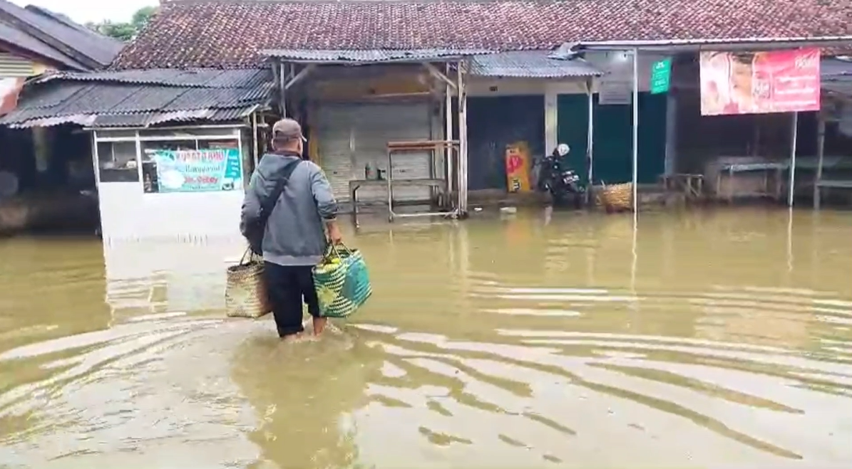 Luapan Sungai Citanduy akibat curah hujan tinggi semakin meluas. Puluhan kios di pasar Kalipucang, pangandaran, Rabu (12/11/2025) pagi tergenang banjir hingga aktivitas jual beli lumpuh total. Semua pedagang terpaksa memindahkan barangnya ke area terminal angkutan umum agar tetap bisa berjualan.