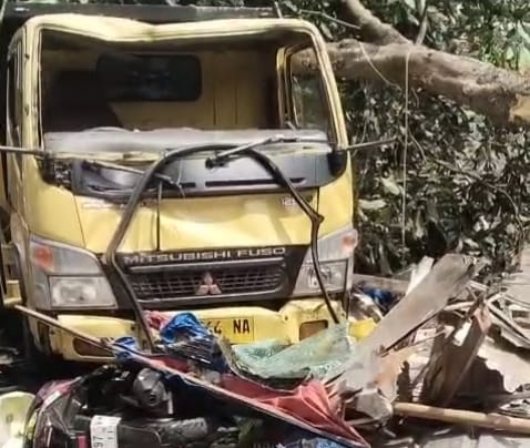 “Selain itu sepeda motor matic juga ikut hancur terlindas, tapi Alhamdulillah tidak ada korban jiwa dalam kejadian ini, sementara untuk sopir tadi alami Lila luka dan dibawa ke Puskesmas Kertahayu” terangnya.