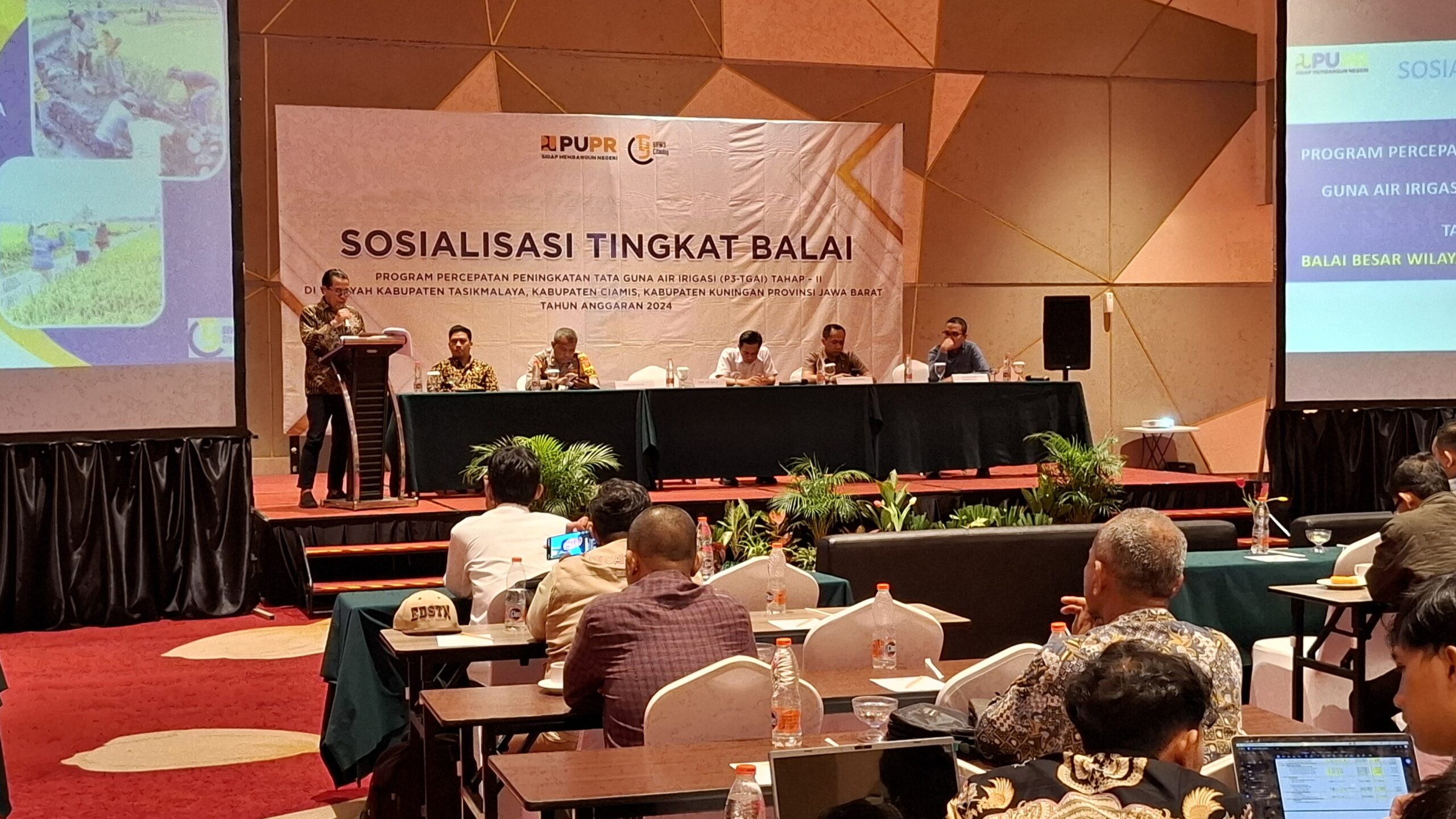 Guna mengejar program padat karya Kementerian Pekerjaan Umum dan Perumahan Rakyat (PUPR), Balai Besar Wilayah Sungai (BBWS) Citanduy menggelar Program Percepatan Peningkatan Tata Guna Air Irigasi (P3-TGAI) tahap II di salah satu hotel di Tasikmalaya, Jumat (6/9/2024). Pelaksanaan P3-TGAI ini, dilakukan sesuai dengan Pedoman Umum dan Petunjuk Teknis P3-TGAI.