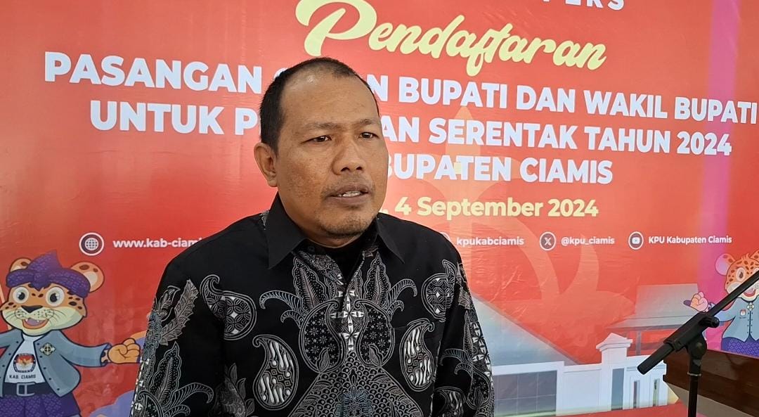 Komisioner KPU Ciamis, Divisi Teknis Penyelenggaraan, Muharam Kurnia Drajat saat memberikan keterangan pers.