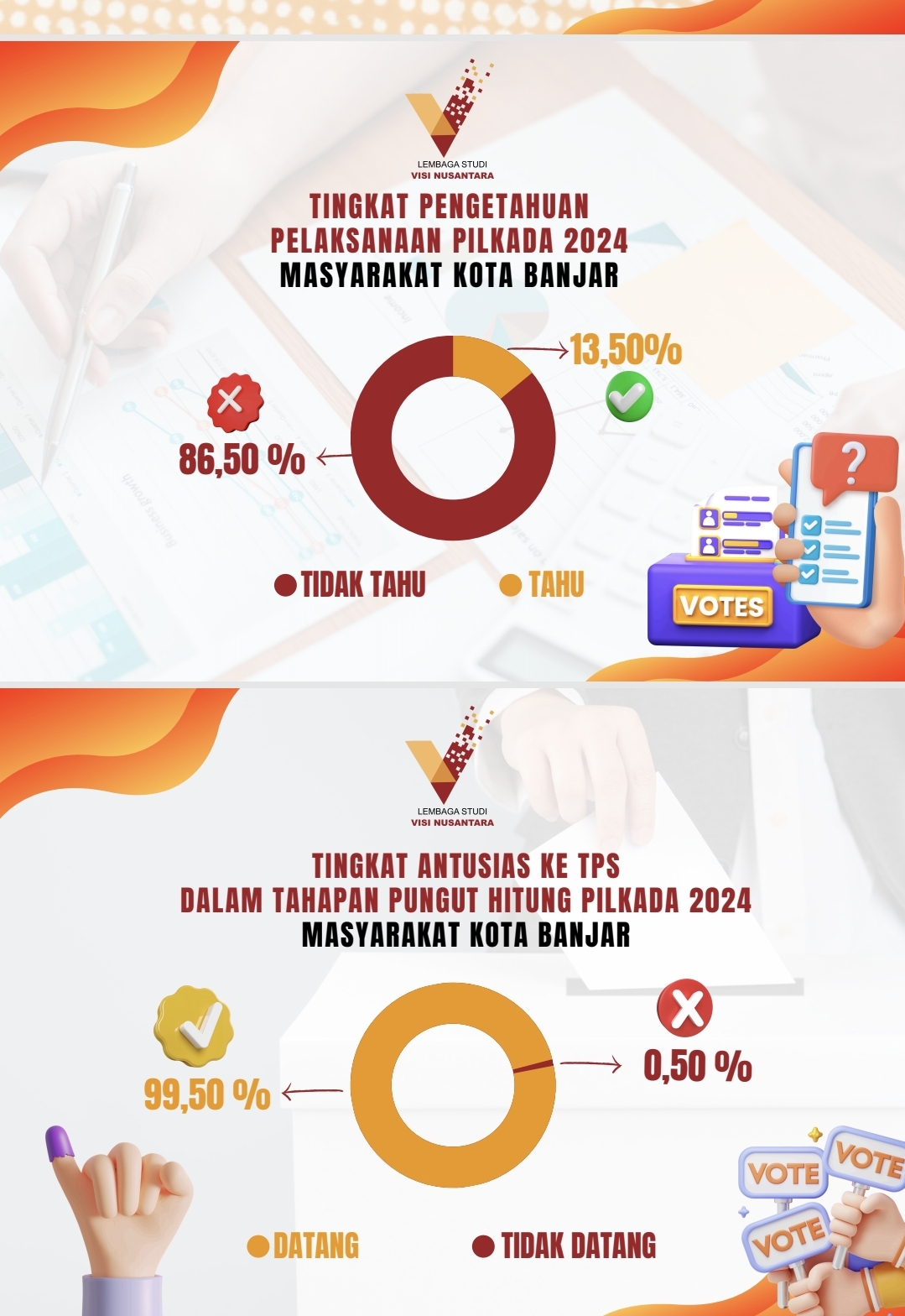 Yus mengatakan meski mayoritas warga Kota Banjar tidak mengetahui perhelatan Pilkada 27 November 2024 nanti, namun LS Vinus mencatat partisipasi warga yang akan datang ke TPS mencapai 99,50 persen.
