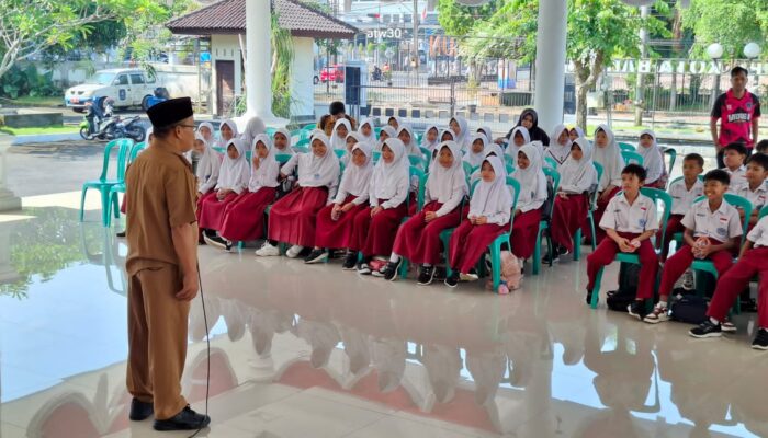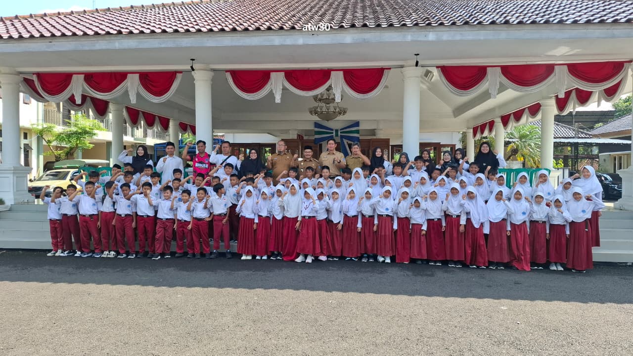 Guna meningkatkan serta memberikan pengalaman belajar langsung di luar ruangan untuk menghubungkan teori di kelas dengan praktek nyata, Madrasah Ibtidaiyah MI 2 Kota Banjar mengunjungi Pendopo Walikota Banjar, Senin (27/4/2026). Kedatangan puluhan siswa kelas 3 itu, disambut langsung oleh Wakil Walikota Banjar, KH Supriana didampingi Kepala Dinas Pendidikan, Staf Ahli Bidang Kemasyarakatan dan Sumber Daya Manusia serta Kepala Bidang Pendidikan Dasar.