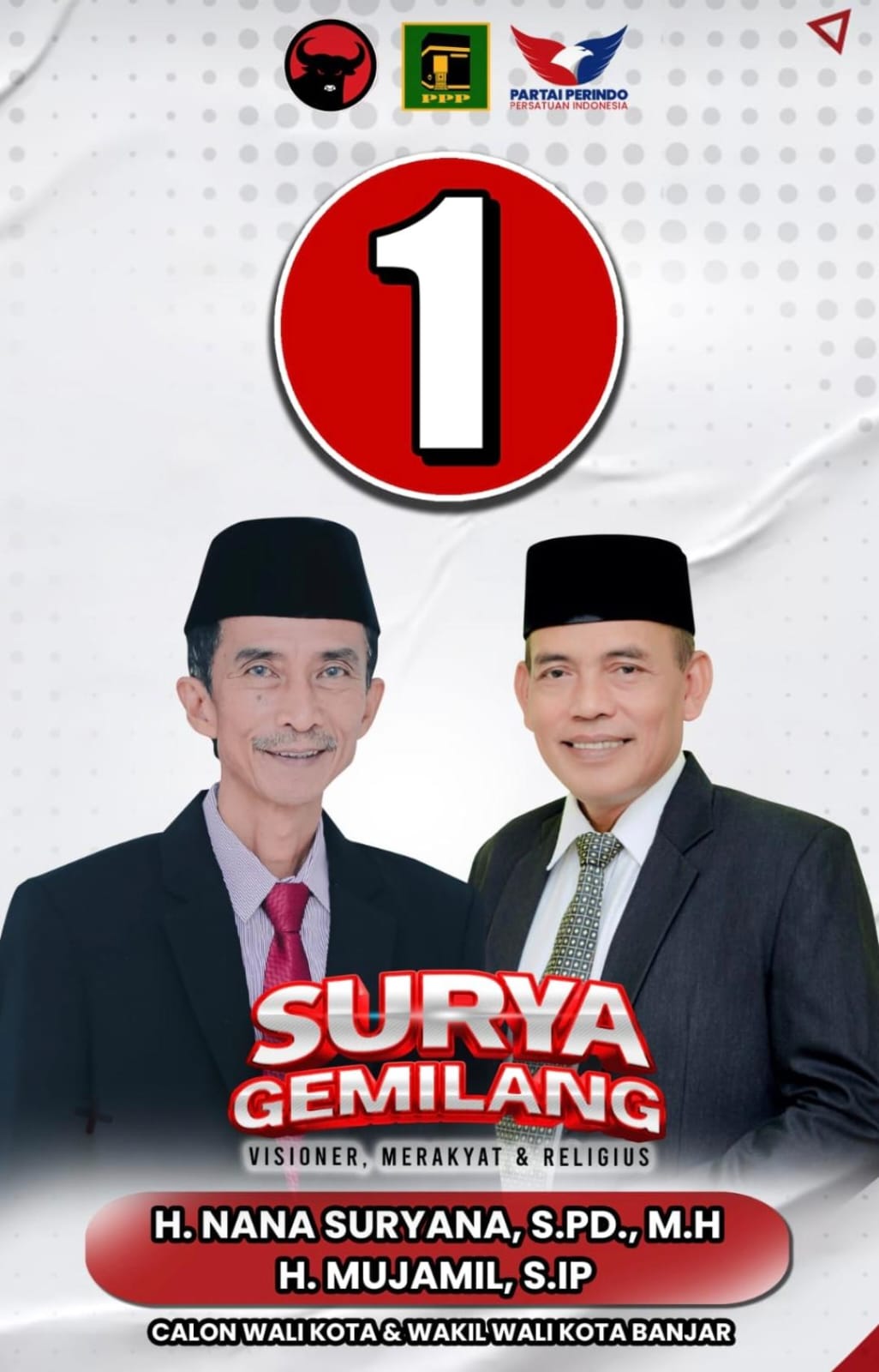 Pasangan Nana Suryana dan Mujamil diusung oleh dua partai tua yakn PDIP, PPP dan Perindo. Keduanya merupakan tokoh senior di dunia perpolitikan di Kota Banjar. Baik Nana Suryana maupun Mujamil, keduanya telah mengenyam bangku legislatif DPRD Kota Banjar.
