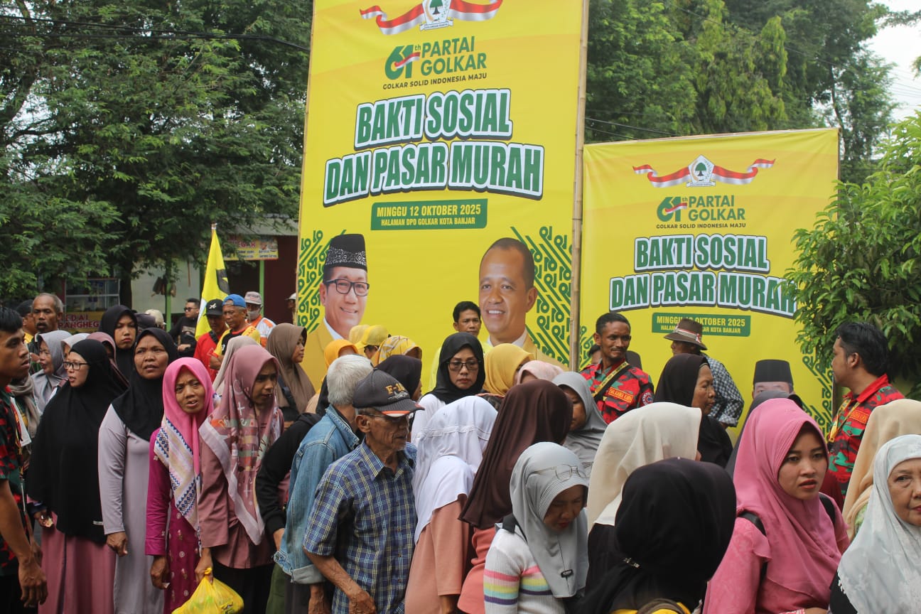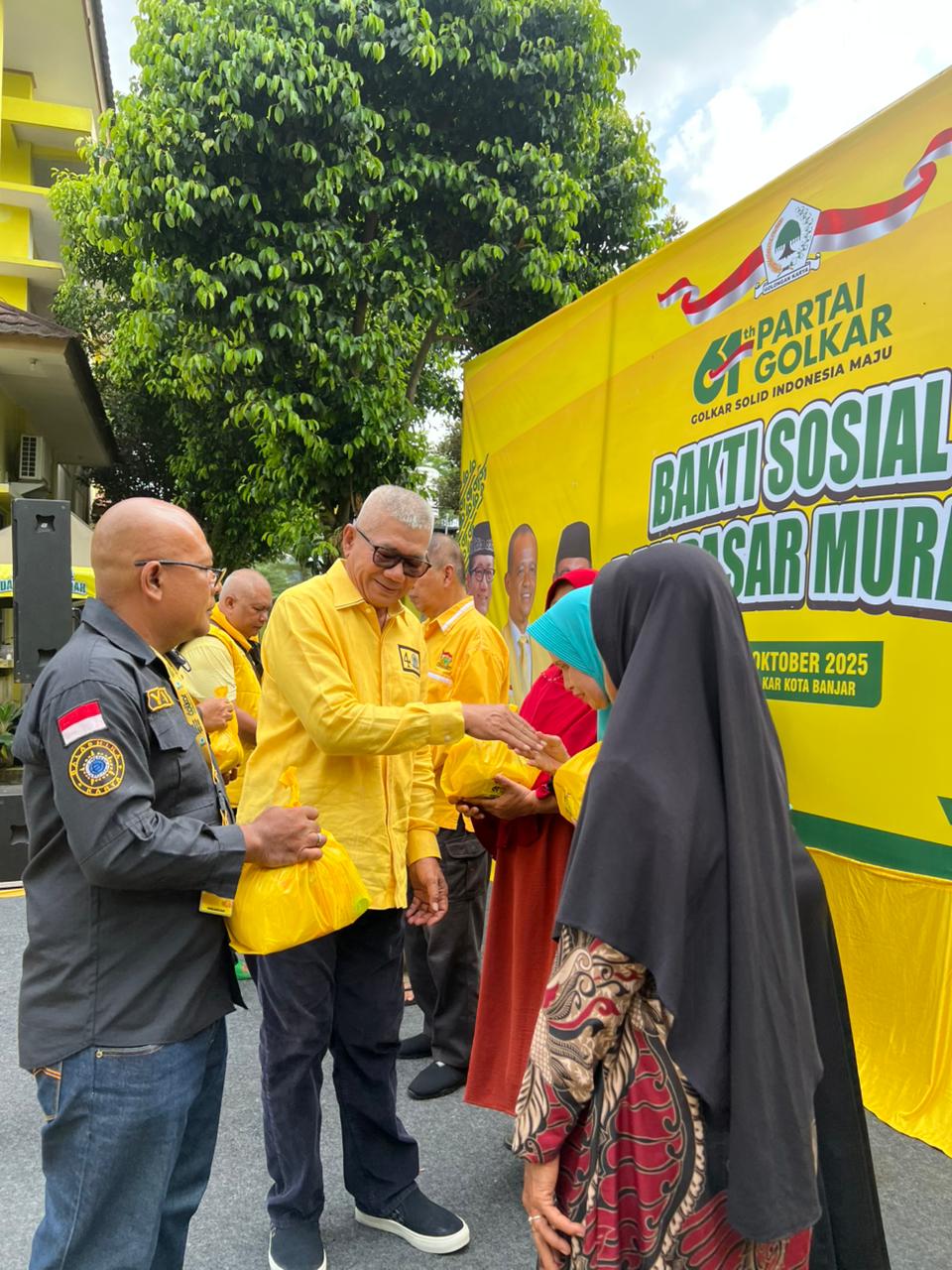 Menyambut HUT ke 61, DPD Golkar Kota Banjar, Jawa Barat, menggelar beragam kegiatan bakti sosial diantaranya 1000 paket sembako di gesung DPD Golkar, Minggu (2/10/2025) pagi.