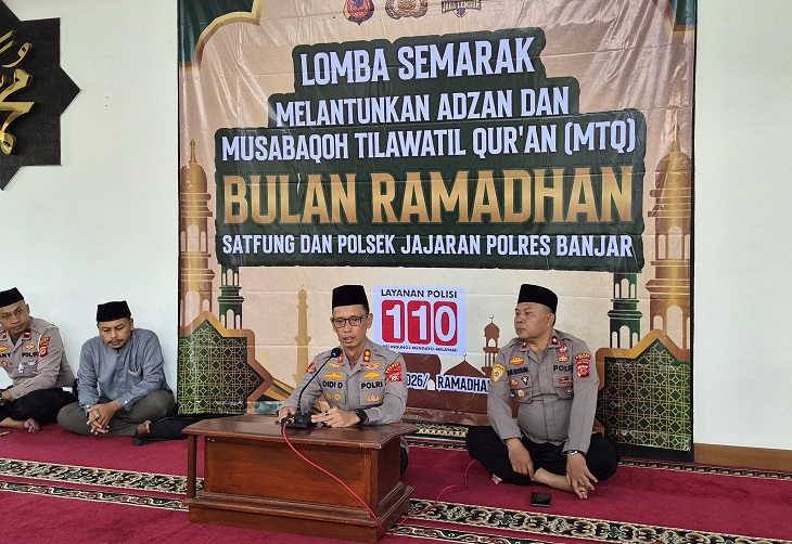 Kepolisian Resor Banjar memanfaatkan bulan suci Ramadhan sebagai momentum pembinaan mental dan spiritual bagi para personelnya. Salah satu kegiatan yang digelar adalah lomba adzan dan Musabaqoh Tilawatil Qur’an (MTQ) di Masjid At-Taubah Polres Banjar, Kamis, 5 Maret 2026.