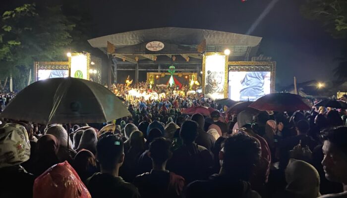 Rangkaian safari budaya Gubernur Jawa Barat, Dedi Mulyadi alias KDM tiba di Kota Banjar, Jawa Barat, Jumat (24/10/2025). Meski diguyur hujan sejak petang, antusias warga tetap tidak terbendung hingga memenuhi lapang Taman Kota.