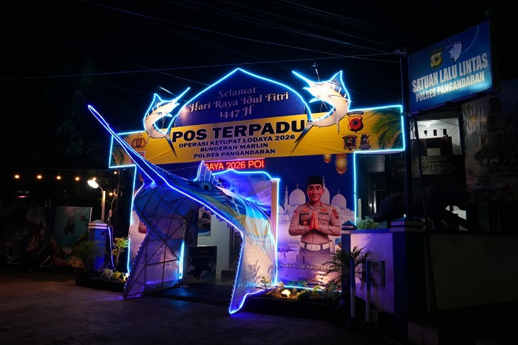 Kepolisian Resor Pangandaran menghadirkan pos pelayanan tematik dalam pelaksanaan Operasi Ketupat Lodaya 2026. Pos terpadu bertajuk “Ikan Marlin” itu didirikan di kawasan Bunderan Marlin, salah satu titik strategis wisata di Pangandaran.